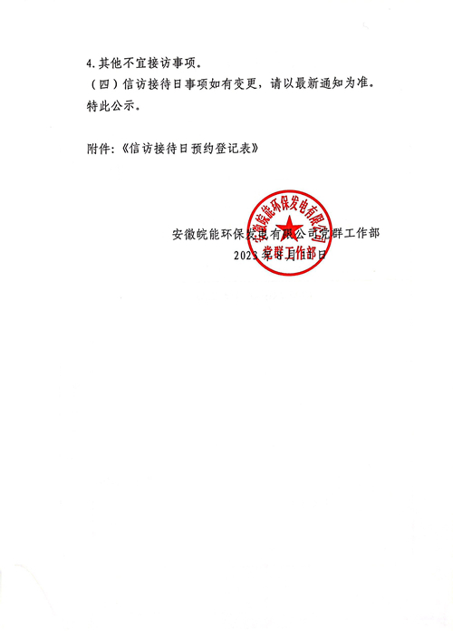 关于开展安徽皖能环保发电有限公司2023年8月信访接待日活动的通知