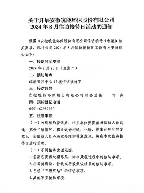 关于开展2024年8月信访接待日活动的通知