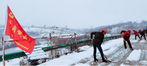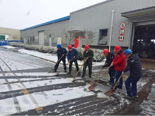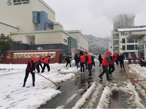 安庆皖能环保公司党支部积极发挥党员模范带头作用,组织党员突击队、党员服务队、青年突击队及行政人员积极行动起来,清扫积雪保畅通。