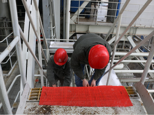为切实保障职工人身安全,在大雪纷飞中,颍上皖能环保公司对露天锅炉本体楼梯和出入口铺设防滑垫,给雪天的厂区披上了“一抹红”。