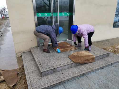 滁州皖能环保公司为确保公司安全生产有序进行,立即安排启动防雪灾防冰冻应急措施,在人流和物流主干道上铲雪、撒盐、除雪,在所有通往室外的通道以及户外的楼梯处都敷设防滑麻包,有效保障垃圾清运车辆交通安全和员工巡检安全,扎实践行了“我为群众办实事”。