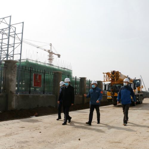 刘亚成一行首先来到项目建设现场,重点走访查看了项目各个建设区域,对现场施工进度、质量安全、疫情防控等情况进行了全面的督导检查。随后,长生公司组织项目参建单位及项目公司主要负责人对项目疫情防控、复工复产工作开展情况及目前所存在的问题进行了详细汇报。