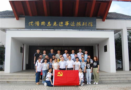 参观后,全体党员在沈浩事迹陈列馆前,面对党旗庄严宣誓,重温入党誓词。