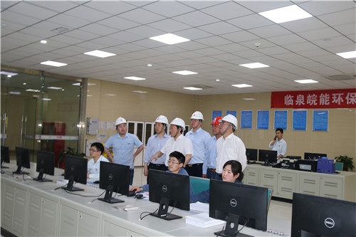 朱宜存一行在环保发电临泉、阜阳、颍上公司集控室、垃圾吊控制室、秸秆收储等重点部位,现场检查了在建项目及投运机组的烟气排放指标控制等环保设施运行情况。