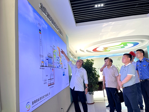 戚丙辉一行实地参观了淮南公司集控室、汽机房、垃圾吊控制室等生产区域,认真听取了淮南公司主要负责同志关于生产经营工作情况的汇报,详细了解了淮南公司发展历程及垃圾焚烧发电工艺流程。