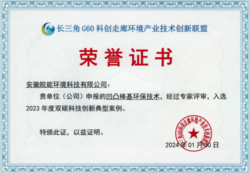 日前,皖能环境科技公司《凹凸棒基环保技术》项目案例入选2023年度双碳科技创新典型案例,并被长三角G60科创走廊环境产业技术创新联盟授予《2023年度双碳科技创新案例推介目录》证书。