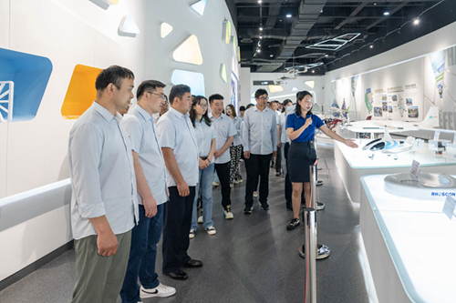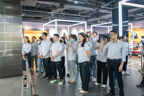 “这个无人机最大能载多少公斤?”“这个跳舞机器人能买到吗?”……党团员们平时埋首办公桌、忙于生产间,难得有这样一次拓展知识视野的机会,都表现出了浓厚兴趣,一边仔细聆听讲解员的介绍,一边在各个展厅驻足、观摩。一件件“黑科技”、一项项“世界第一”,不断激发起大家的自豪感和成就感。
