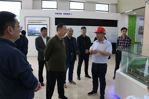 王玉峰一行在颍上公司环保教育展厅观看生活垃圾焚烧发电工艺流程宣传片,听取颍上公司主要负责人就公司基本情况、安全环保、生产经营等方面的介绍,详细了解渗滤液处置、循环水排污水处理、浓水回用、生活垃圾和生物质秸秆收储以及供热等情况。