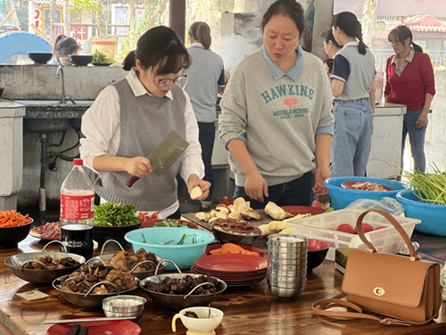 活动当天,参加活动人员到达目的地后,迅速以极高的热情投入活动中。有在灶台旁烧火洗锅,有切菜剁肉、摘洗蔬菜,有围炉烧烤,大家分工协作、有条不紊,每个人都不甘落后,勇争“厨神”,忙得不亦乐乎,同事们自己动手相互配合,体验生活的乐趣。随着炊烟袅袅升起,一阵阵香味也扑鼻而来,大家围坐在一起,津津有味地品尝着美食,谈谈生活,谈谈工作,彼此间愉快地交流,不时传出开心的欢笑声。