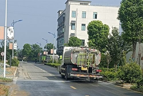 临泉公司积极与临泉国祯自然美环卫有限公司沟通协调,临泉国祯自然美环卫有限公司出动绿化洒水车、环卫扫地车,分上午、下午两个时段,对厂区内道路、垃圾车运输通道、二期项目现场施工道路等实施洒水抑尘除尘作业,使路面达到见干见湿、见潮不见水流的效果,在一定程度上缓解高温酷热环境对员工工作的影响,起到降尘、降温、加湿的功效,同时对沥青路面起到一定的养护作用。