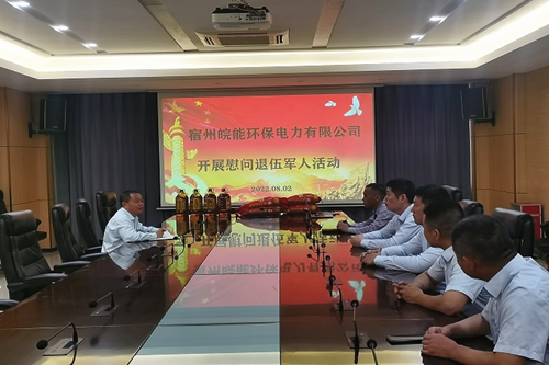 在中国人民解放军建军95周年之际,为营造拥军优属、关心关爱退役军人良好氛围,宿州皖能环保公司开展“八一”慰问退伍军人活动。