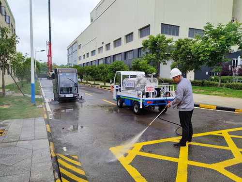 二是加强硬件投入,有力提升保洁效率和质量。通过与保洁单位充分协商和沟通,新配置了道路清扫车和高压冲洗车,高效快速地做好厂区道路和狭窄区域喷洒清扫工作,切实解决了路面污迹、卫生死角等重点区域的卫生问题;