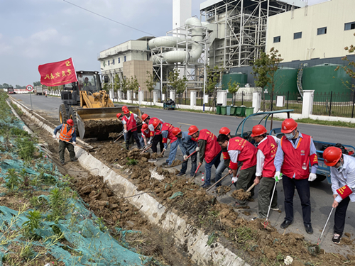 为做好今年的汛期防汛工作,筑牢汛期安全防线,4月27日,长丰皖能生物质能公司党支部组织全体党员、各部门负责人、入党积极分子及相关重要岗位人员对厂区的排水沟进行彻底清理。