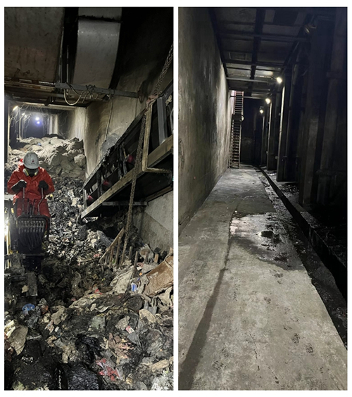 经过长达55天的连续奋战,4月23日,随着最后一批次皮带运输机、作业挖机等机械设备安全撤离,长丰皖能环保公司垃圾库底部格栅更换及廊道内垃圾清理工作圆满完成。