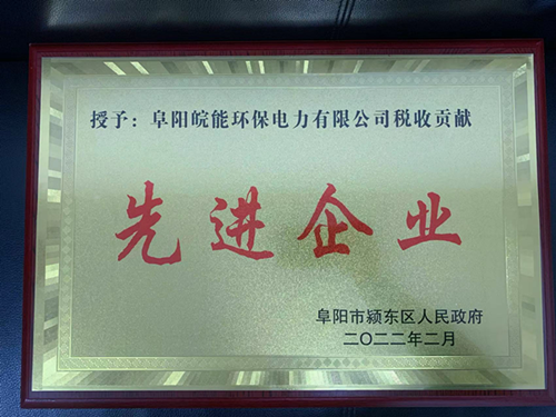 阜阳皖能环保公司荣获“税收贡献先进企业”称号