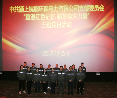 为进一步巩固深化党史学习教育成果,引导公司党员干部传承红色基因,坚定理想信念。1月25日,颍上皖能环保公司党支部组织党员、入党积极分子和统战人员开展观看抗美援朝题材电影《跨过鸭绿江》暨“重温红色记忆 凝聚奋进力量”主题党日活动。
