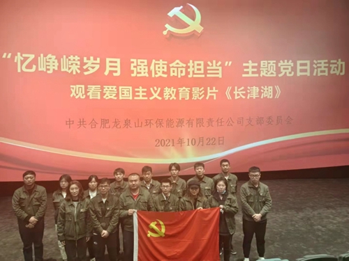 为推进党史学习教育持续深入开展,进一步激发广大党员干部的爱国热情。10月22日,合肥龙泉山环保能源公司党支部开展“忆峥嵘岁月,强使命担当”主题党日活动,组织公司党员、入党积极分子及团员代表观看爱国主义教育影片《长津湖》。