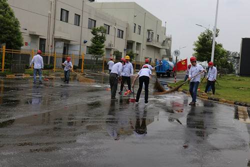 近日,蚌埠皖能环保公司党支部组织开展了“践行初心使命、创建文明厂区”主题党日活动,对厂区物流道路进行全面清洗。