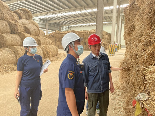 检查人员对颍上公司生产现场的消防设施、设备、器材配备、火灾报警系统可靠性情况,生物质料场巡检、堆垛、测温等情况进行了实地查看、抽查和试用,重点对生物质料场火灾排查、防患措施落实情况以及可能存在的用动火隐患、料场机械车辆作业防火、生物质燃料科学堆垛情况等进行了重点检查。检查人员对颍上公司消防工作给予了充分的肯定,对个别消防箱内消防水带配备较少的问题等提出了整改意见。