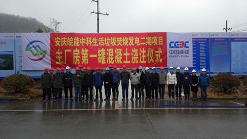 近日,安庆皖能环保公司二期扩建工程主厂房浇筑第一罐砼,标志着该工程正式进入主体结构施工阶段,该项目EPC总承包、监理等单位相关负责人出席浇筑仪式。