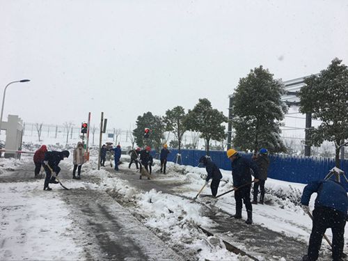 2018年安徽省普降暴雪,为进厂车辆带来了极大的不便。1月4日上午,为了减少积雪造成路面结冰,阜阳皖能环保公司党支部组织全体党员、入党积极分子开展积雪清扫活动。