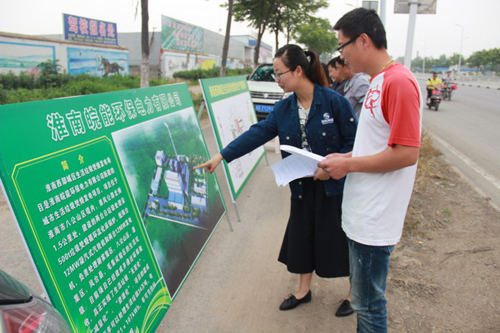 活动现场布置在厂区路口的孔集村。淮南公司除了与往年一样,通过设立展示垃圾焚烧发电生产流程和工艺的科普展板和发放环保宣传资料的方式,向来往的村民介绍淮南公司垃圾焚烧发电项目生产的基本情况,还通过充分宣讲告诉来往村民,淮南公司每年焚烧垃圾的减容后相当于节省了40亩土地,而且在生产过程中真正实现了垃圾处理的减量化、无害化和资源化。村民们都纷纷点头表示赞同。