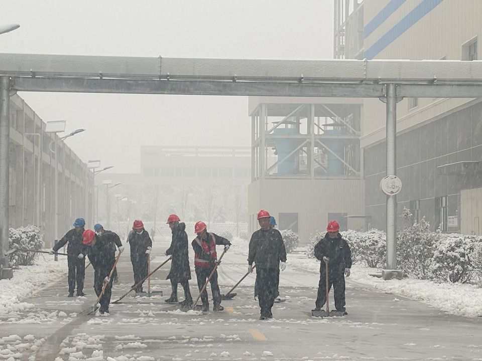 雪映党旗红 乾县皖能环保公司党员突击队开展厂区扫雪除冰活动
