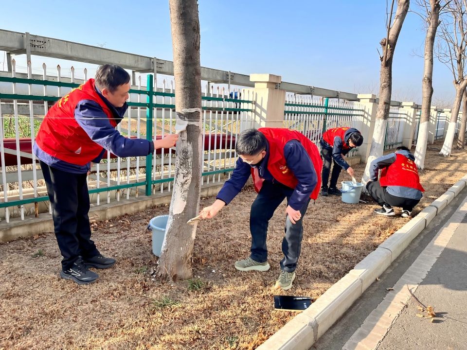 冬季树木涂白是帮助树木安全越冬的重要措施,不仅能有效抵御低温冻伤和昼夜温差导致的日灼伤害,还能杀灭树皮内越冬的虫卵与病菌,从源头减少来年病虫害发生。活动现场,党员们热情饱满、干劲十足,严格遵照“上口平齐、下不露根”的作业标准,手持工具对树皮缝隙、孔洞及树杈等关键部位反复细致涂刷,确保涂白剂均匀覆盖、不留死角。经过一番辛勤劳作,厂区内一排排行道树陆续披上洁白整齐的“新装”,既有效提升了树木抗寒抗病虫害能力,也为冬日的厂区增添一道清新靓丽的风景线。
