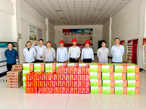 公司负责人向生产人员送去一箱箱防暑降温饮品,对员工不畏高温、兢兢业业的工作态度给予充分肯定,并叮嘱大家在做好工作的同时,注意防暑降温。