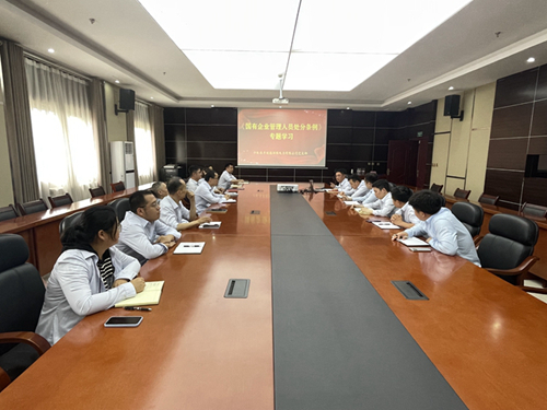 会上集中学习了《国有企业管理人员处分条例》原文内容,并对《条例》出台的背景、目的、要求、适用范围、处分种类和具体违法行为等进行了重点学习。