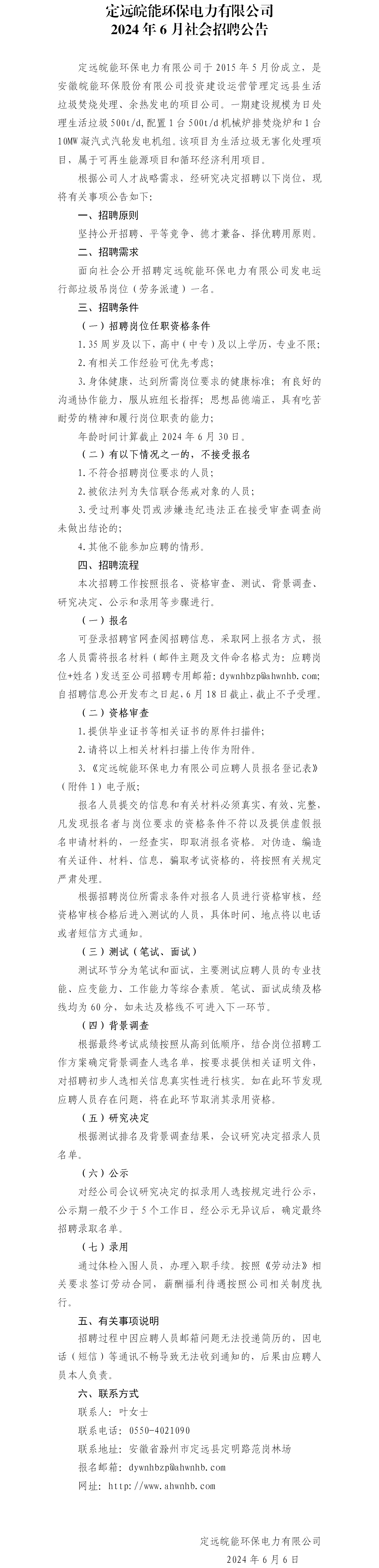 附件1:定远皖能环保电力有限公司应聘人员报名登记表