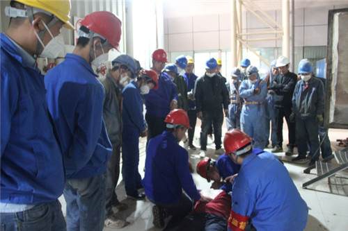 演练前安环部人员为检修人员讲解有限空间作业履行审批程序、审批制度、危险点分析、救援注意事项及演练要求。演练模拟开始,一名在炉膛内工作人员昏迷,“事故”发生后现场工作人员立即向领导报告启动应急预案,同时开展救援工作。救援过程中利用假人教具为现场作业人员演练救援程序、讲解心肺复苏救援方法,经过半个小时紧张有序的模拟演练,事故得到有效处置,应急演练顺利结束,达到预期效果。