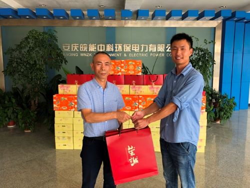 在中秋佳节来临之际,安庆皖能环保公司党支部书记符义卫、工会主席张国平为员工们送上公司的关怀和节日祝福,并将月饼、黄桃等慰问品递到员工手上,同时还关切地询问了坚守一线员工们的生产情况。叮嘱大家在节日期间,一定要抓好安全工作,确保安全生产。