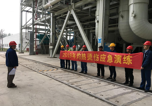 近日,颍上皖能环保公司组织各部门员工,在生物质锅炉0米层开展灼热烫伤应急演练。