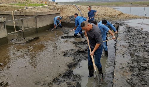 池州皖能环保公司针对特殊旱情,为实现池州市生活垃圾焚烧发电项目2019年11月底建成投产进度目标,组织公司党员志愿服务队对取水口设施和前池进行清淤,采取临时措施落实补给水供水条件,有效保障取水口入水的品质要求。