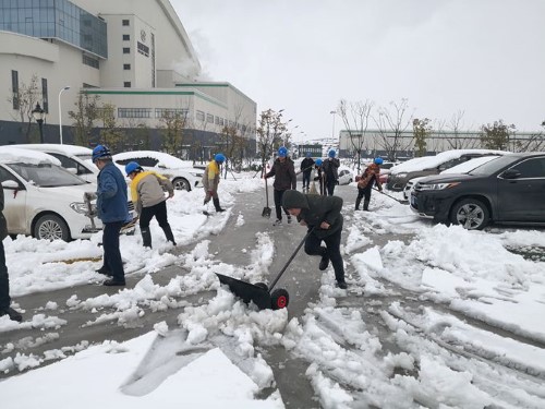 为消除安全隐患,保障现场生产区域和员工出行安全,公司部分党员、团员及入党积极分子们自发的对厂区积雪进行清扫,主要对厂区主道路、停车场、各机房等路口进行清理。在劳动过程中,大家不畏严寒,个个干劲十足,丝毫没有因为天气恶劣而影响工作热情。经过辛勤劳动,厂区内外的积雪被清扫干净,为生产现场和员工出行开辟了一条安全通道。这一暖心的行动赢得了员工们的纷纷点赞。