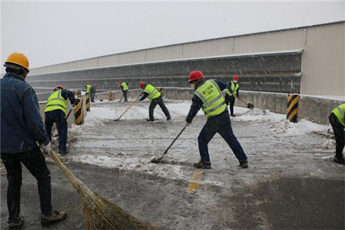 在厂职工做好个人防护后,纷纷携带扫帚、铁锹等工具,来到垃圾上料栈桥、生产楼区域、办公楼区域、职工食堂区域,全身心投入到扫雪除冰实际行动中。广大职工发扬不惧寒、不怕累、不嫌脏的精神,你追我赶,默契配合,铲雪的、扫地的,干得热火朝天,劲头十足,任凭风雪吹打在脸上、身上也丝毫未减大家的劳动热情。经过一个多小时的协同作战,各区域积雪均清扫完成。此次扫雪除冰活动特别强调对垃圾上料栈桥上所有积雪、积冰要进行彻底清除,并及时撒上融雪剂,以有效措施保障入厂垃圾运输车辆安全行驶,确保颍上县生活垃圾及时有效得到处置。通过开展此活动,增强了公司的凝聚力、战斗力,展现了颍上公司的良好精神风貌。