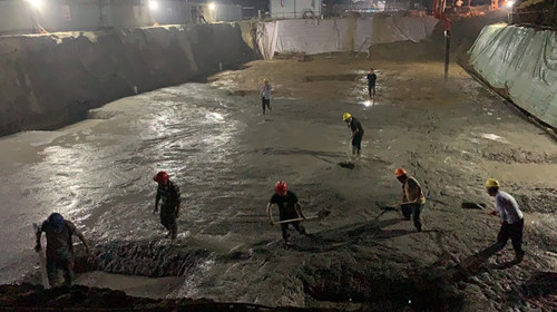 为加快工程进度,颍上公司紧盯天气状况,提前安排设计院、工程勘察院进厂,组织人力、物力,抢抓7月28,7月29日晴好天气,连续奋战两天两夜,将基坑开挖至标高,验槽一次通过,垫层浇筑完毕。此次基坑垫层浇筑完成为后续施工奠定了坚实基础。