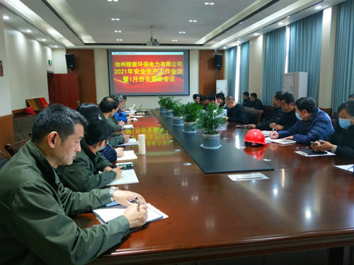 近日,池州皖能环保公司召开2021年安全生产工作会议暨1月份安委会。公司领导、各部门负责人、各专业专工、外委单位、值长及职工代表参加会议。
