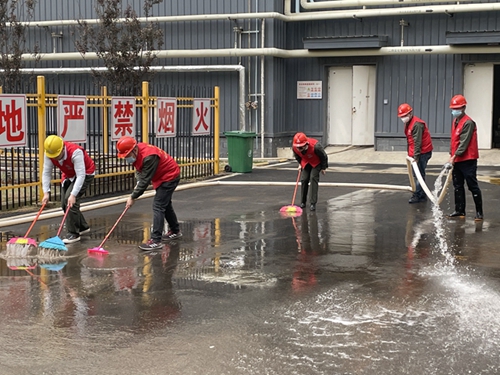 本次活动分为两个小组,每个小组由组长带领进行打扫。活动过程中各小组内进行分工合作,不同的人负责不同的区域,有着不同的任务,各小组人员撸起袖子、扑下身子,有的在洗刷地面,有的徒手拔除杂草……大家干得热火朝天。本次党员服务队志愿活动历时2个多小时,公司1号仓库前侧地面以及厂区道路环境得到了明显改善。