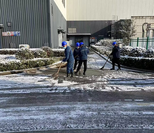 临泉公司结合现场实际情况,立足防寒防冻工作特点进行针对性的安排和部署。一是对全厂门窗、电气开关室、设备保温、仪表伴热等隐患排查,即发现即排除;二是对厂区人员流动量较大的积雪结冰区域采取铺设防滑垫等防滑措施,对垃圾栈桥及厂区道路撒盐融雪,做好防冻防滑工作;三是加强班中巡检,针对天气变化情况做好事故预想;四是在氨水、氢氧化钙等生产物资供应上,提前与供货商做好对接,防止因雨雪严寒天气对生产物资供应带来不利影响。