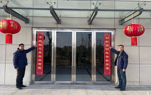 公司从原创春联的立意、内涵、韵律等多方面综合评选,对征集的春联评出优秀奖和鼓励奖,获得优秀奖的三幅作品在大楼门前进行了张贴。