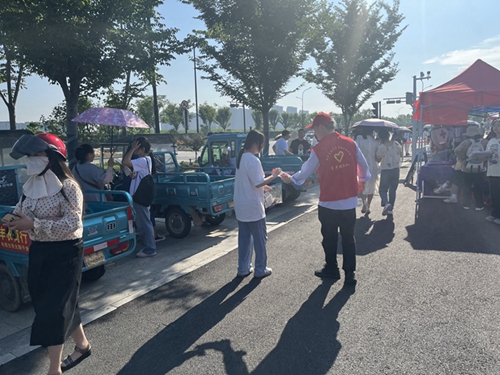 当天,志愿者们一早便来到考点外,帮助搭建遮阳棚,摆放凳子,为考生和家长提供矿泉水、纸巾、湿巾等便民物品,同时协助维持考点周围秩序,以实际行动为广大考生加油鼓劲,表达对考生们的良好祝愿。