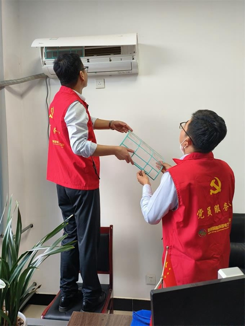 活动前,党员服务队讲解了空调清洗操作规范与安全注意事项。全体队员身穿红马甲,手拿清洁工具,分工合作、互相配合、认真清洗。看着焕然一新的空调,大家纷纷表示这次活动太及时了,达到了立竿见影的效果。
