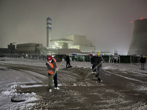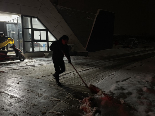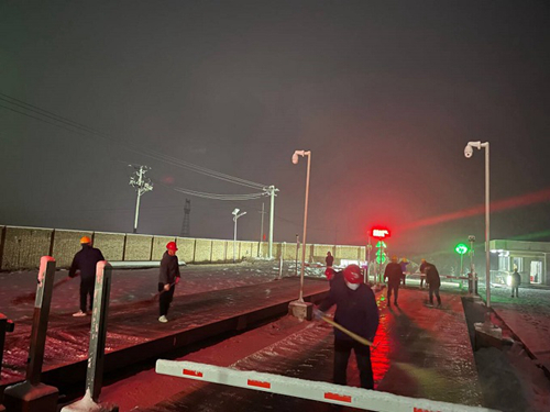 随着工作群内一声召唤,已经下班的员工们纷纷加入除雪队伍,在第一时间对受影响较大的垃圾地磅、栈桥坡道区域进行除雪、除冰工作,优先保障垃圾车辆进厂。随后,突击队员们又对室外楼梯、连廊通道、厂前区道路等区域积雪进行了清扫。经过近两个小时的辛勤劳动,主要道路的积雪和冰层被清扫干净,为日常生产开辟出了安全通道。