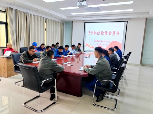 近日,阜阳皖能环保公司召开2号机组检修动员会,对机组检修工作进行全面部署,公司领导、相关部门人员、参检外委单位负责人参加。