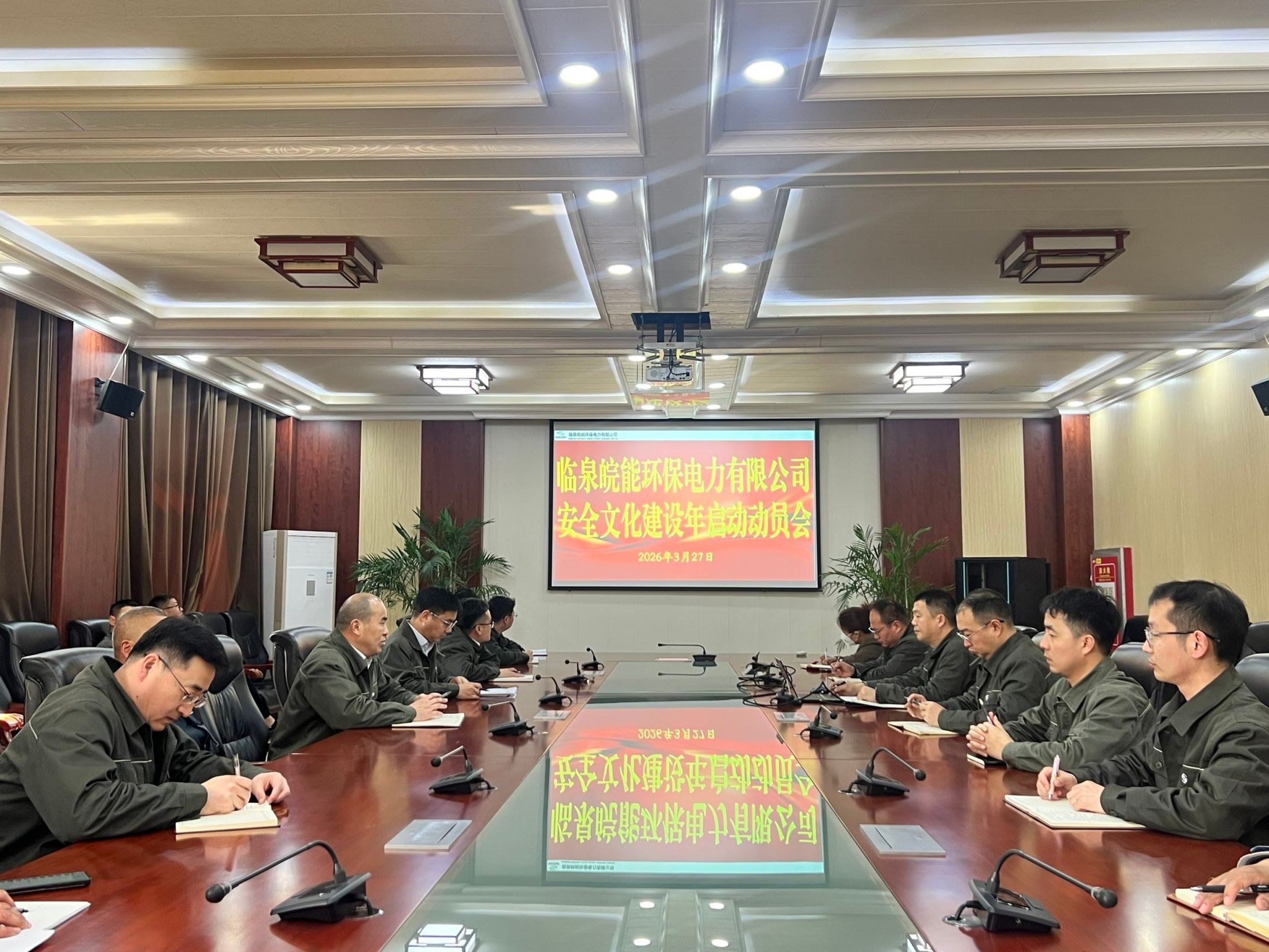 3月27日,临泉皖能环保公司召开“安全文化建设年”启动会,全面部署为期一年的安全文化专项建设工作。公司领导班子、各部门及外委单位负责人及员工代表参会。