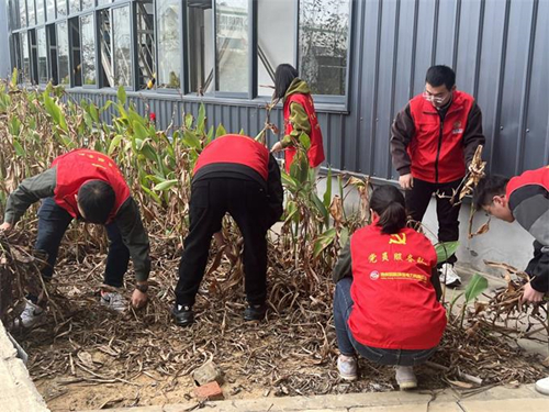 活动中,党员服务队联合团员青年志愿者们一边清理枯枝落叶和杂草,一边将杂草扫到一边,整理打包后统一清理。大家分工合作,热情高涨,任劳任怨,发扬不怕脏、不怕累的精神,将枯叶杂草全部清除干净,为公司的环境挥洒辛勤的汗水。