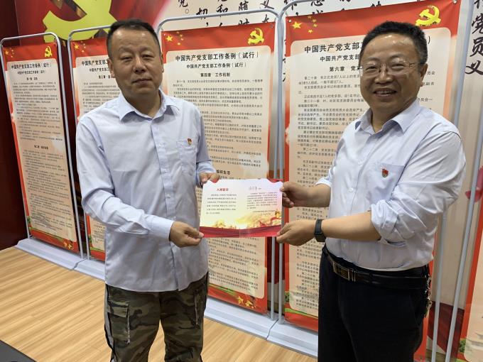 活动中,定远公司主要负责人为过政治生日的党员同志送上了精美的政治生日贺卡,并向每名过“生日”的党员赠送一本党员干部智库书籍作为生日礼物。“今天是你们的政治生日。在这神圣的日子里,向你们致以节日的问候!希望大家时刻牢记自己是一名共产党员,时刻牢记党的宗旨和使命,增强党员意识,注重党性修养,践行入党誓词,不忘初心、牢记使命。随后,全体党员庄严举起右手,面向党旗,重温了入党誓词。