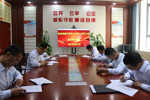 6月10日,临泉皖能环保公司党支部开展了党史知识测试活动,进一步激发全体党员学习党史的积极性和主动性,引导全体党员不断增强“四个意识”、坚定“四个自信”、做到“两个维护”。